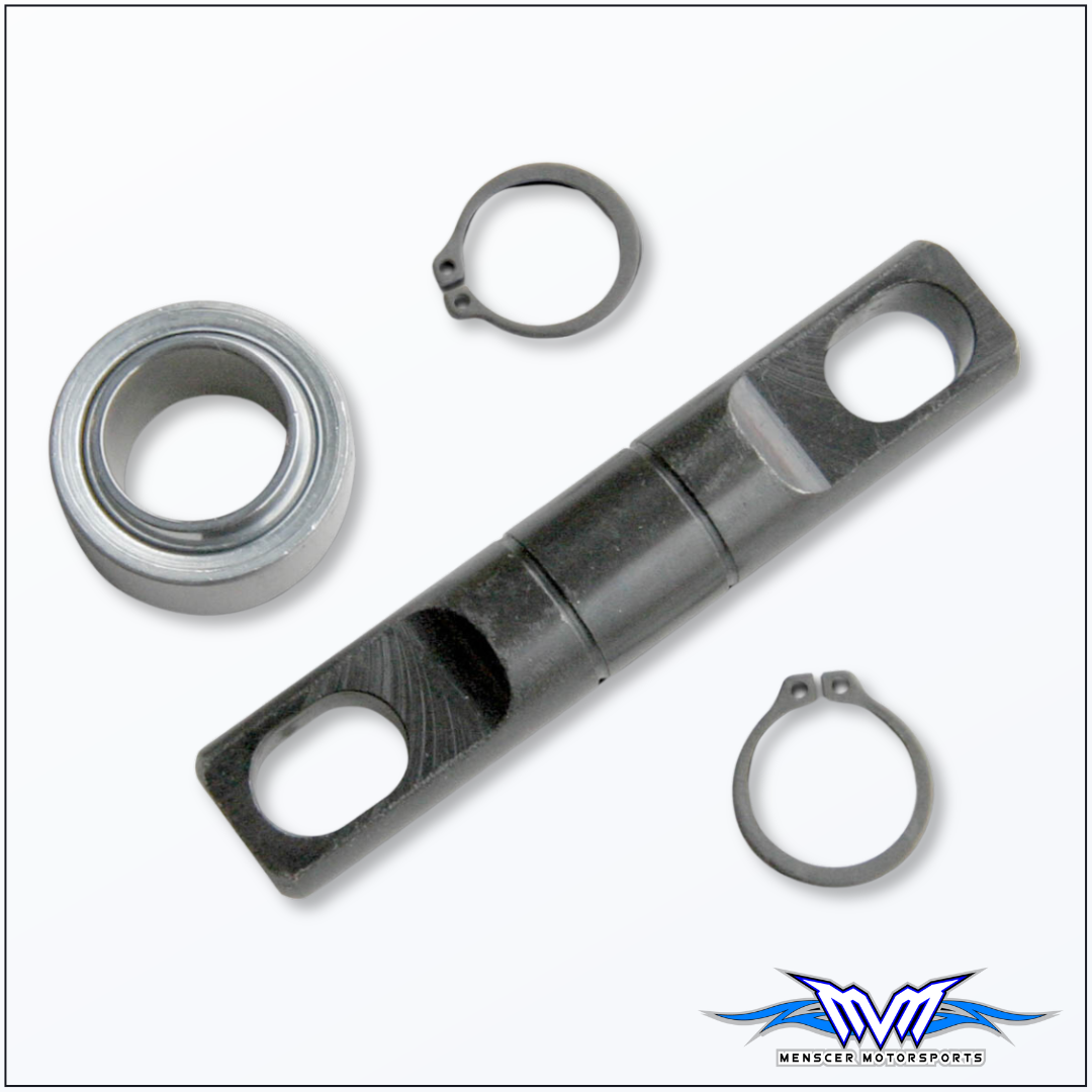 This tie bar kit includes a 1.06" o.d. x 5/8" i.d. bearing, (2) c-clips and a tie bar with a 2 3/8" bolt center. Will convert a bearing end shock to fit lower front GM, upper rear GM and other stock mount applications that use a tie bar.